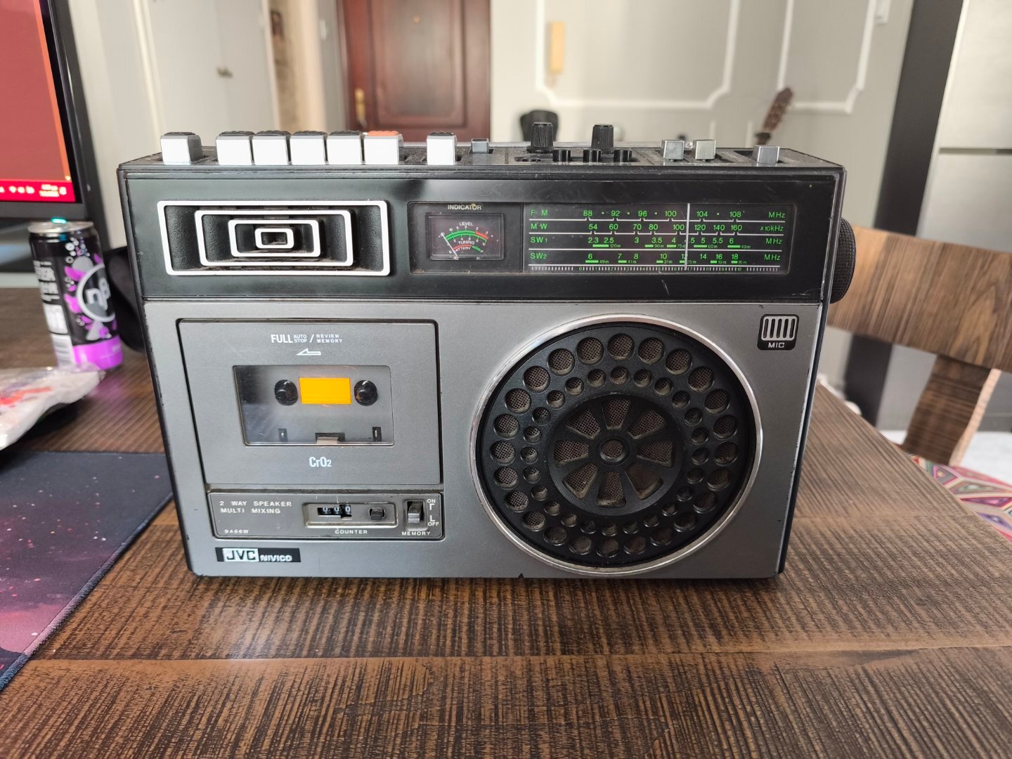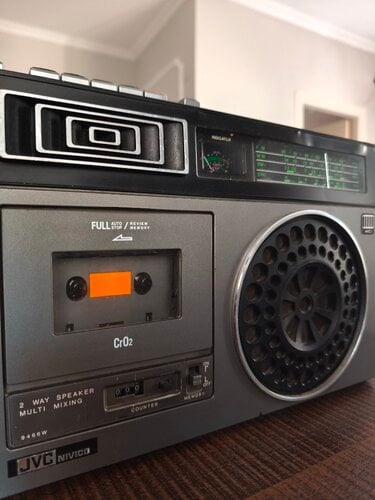 Αυθεντικό ραδιοκασετόφωνο JVC Nivico 9466W, γνήσιο ιαπωνικό μοντέλο της δεκαετίας ’70/’80. Ένα πραγματικό κομμάτι εποχής για συλλέκτες αλλά και για όσους θέλουν να ξαναζήσουν την αίσθηση του κλασικού ήχου.