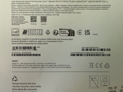Apple iPad Pro 2024 11" (5G/256 GB/M4/8 GB/iPadOS 17)