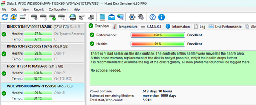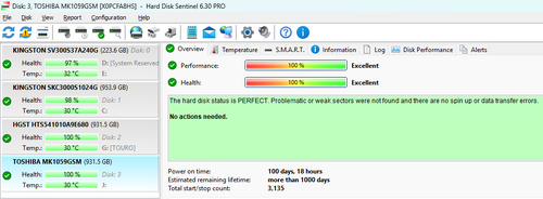 Υγεία δίσκού άριστη 100% στο Hard Disk Sentinel