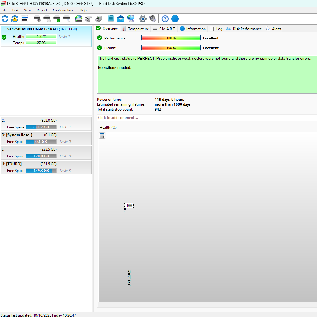 Υγεία δίσκού άριστη 100% στο Hard Disk Sentinel
