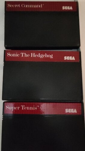 Δίνονται επίσης τα Sega Master System 1, 2, στα 80 και 50ε αντίστοιχα, και αν αγοραστούνε μαζί θα γίνει κάποια έκπτωση, σε πολύ καλή κατάσταση και πλήρως λειτουργικά με ένα χειριστήριο το καθένα. Παίζουν σε σύστημα pal, η region και των τίτλων της φωτογραφίας Sonic the Hedgehog και Super Tennis, που είναι επίσης διαθέσιμα.