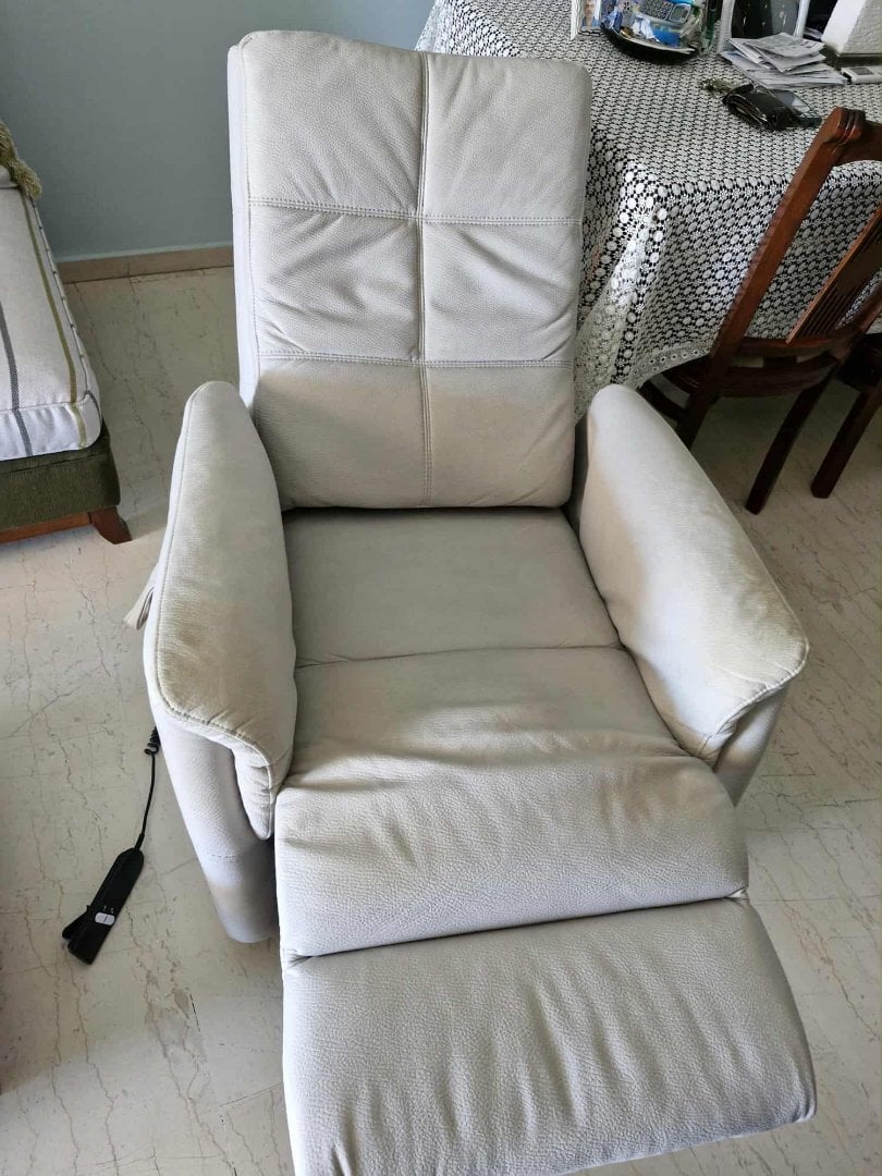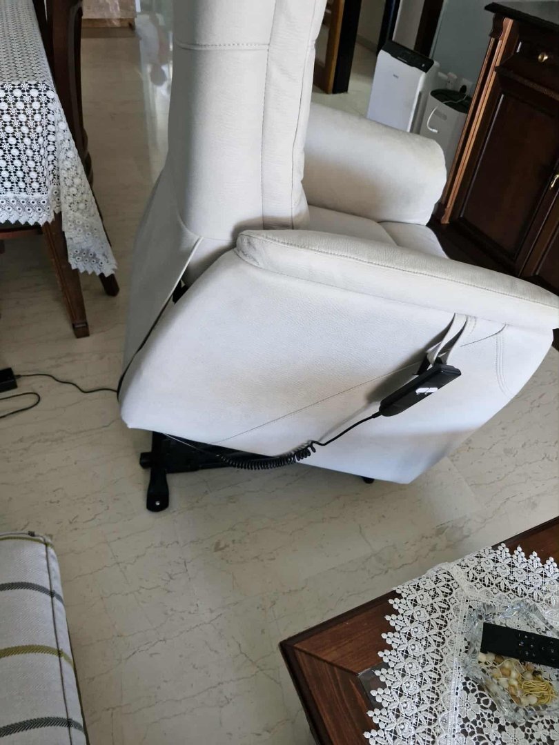Ηλεκτρική πολυθρόνα , Εργονομική και αναπαυτική για χρήση στο σπίτι ή στο γραφείο. Φέρει δύο αυτόνομα μοτέρ για ανεξάρτητη ανάκλιση της πλάτης και ανύψωση των κάτω άκρων. Μπουτόν ταυτόχρονης ανάκλισης της πλάτης και των υποποδίων, και ανύψωση της πολυθρόνας σε ημιόρθια θέση. Δύο οπίσθιοι τροχοί για εύκολη μετακίνησή της μέσα στον χώρο. Επένδυση από αδιάβροχο, αεριζόμενο ύφασμα.