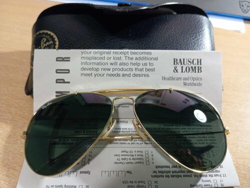 RAY-BAN bosch & lomb 62mm. Μade in USA! like ΝΕW. Tα γυαλιά είναι κυριολεκτικά άθικτα like NEW έχουν φορεθεί μετρημένες μόνο πέντε έξι φορές και προέρχονται απο προσωπική συλλογή, αγορασμένα απο Νέα Υόρκη το 1990. Έχουν πράσσινους G15 φακούς ίδιους με αυτούς που χρησιμοποιεί η πολεμική αεροπορία των ΗΠΑ, και σκελετό βουτηγμένο σε χρυσό 14k. Δεν είναι πια σε παραγωγή με αυτούς τους φακούς και αυτό το σκελετό. Μπορώ να αποστείλω περισσότερες φωτό σε όποιον ενδιαφέρεται σοβαρά. Τιμή 250€