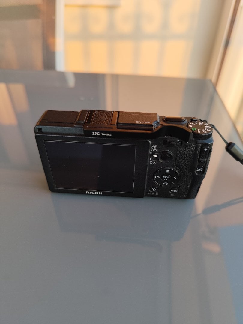 Έρχεται με το κουτί της και ότι περιείχε αυτό (φορτιστή, καλώδιο φόρτισης, εγχειρίδιο, γρήγορο οδηγό, λουράκι καρπού, ακόμη και το CD). Επιπλέον, έχει δεύτερη μπαταρία (third party), thumb grip της JJC (TA-GR2) και μεταλλικό καπάκι προστασίας φακού της JJC.