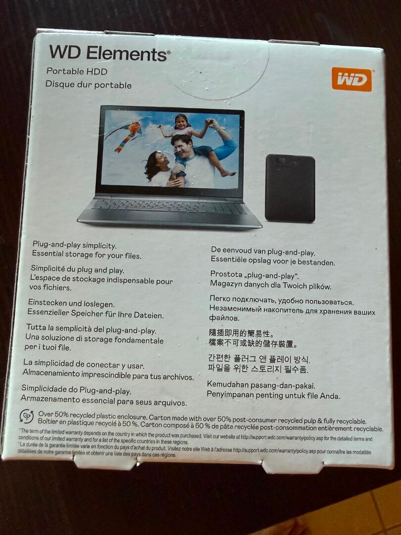 WD εξωτερικός σκληρός δίσκος HDD 1ΤΒ Κλειστό κουτί