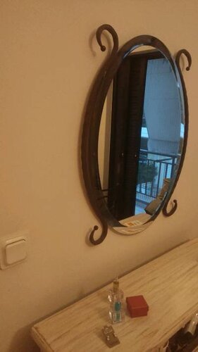 Κρεμαστό φωτιστικό σφυρήλατο με φινίρισμα αντίκ & πιατέλα αμμοβολής, σφυρήλατος οβάλ καθρέφτης ιδιαίτερου σχεδιασμού για διακόσμηση χωλ/υπνοδωμάτιου (50x70) και πολυθρόνα νεοκλασικού σχεδιασμού από τεχνητό δέρμα με τρουκ (60x1,40). Τρία κομμάτια που συνδυάζουν ποιότητα, κομψότητα και διαχρονικό στυλ, ιδανικά για να ανανεώσουν κάθε χώρο!