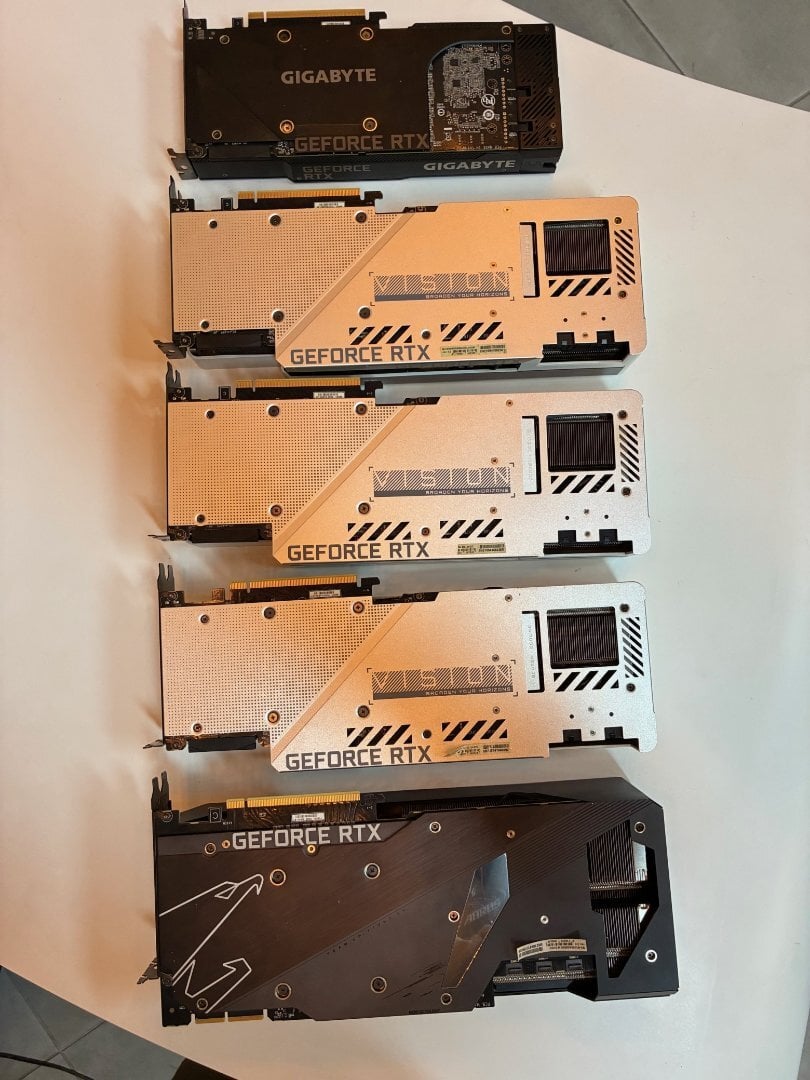 5x Gigabyte GeForce RTX 3090 24G (1x Turbo/3x Vision/1x Aorus)