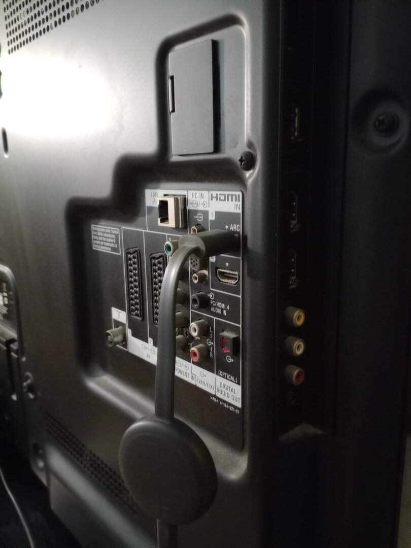 Επειδή η τηλεόραση δεν είναι Smart TV δίνεται μαζί και η συσκευή Google Chromecast που μετατρέπει την τηλεόραση σε Smart TV. (Μπορείτε πέρα απο την τηλεόραση να το συνδέσετε και σε υπολογιστή)
