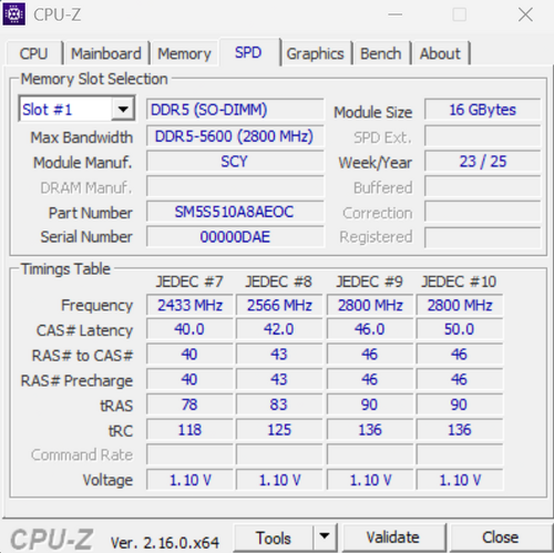 1x16gb DDR5 5600Mhz cl46 SODIMM