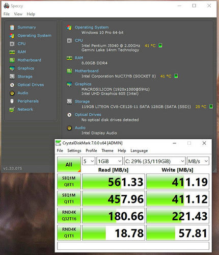 Πωλείται το Intel NUC7JY με τον Intel Pentium J5040, 1x8GB DDR4 Kingston (θέση για άλλα 8GB), 120GB SATA SSD στο κουτί του με όλα τα παρελκόμενα και δώρο ένα usb WiFi6 (AX900) dongle.