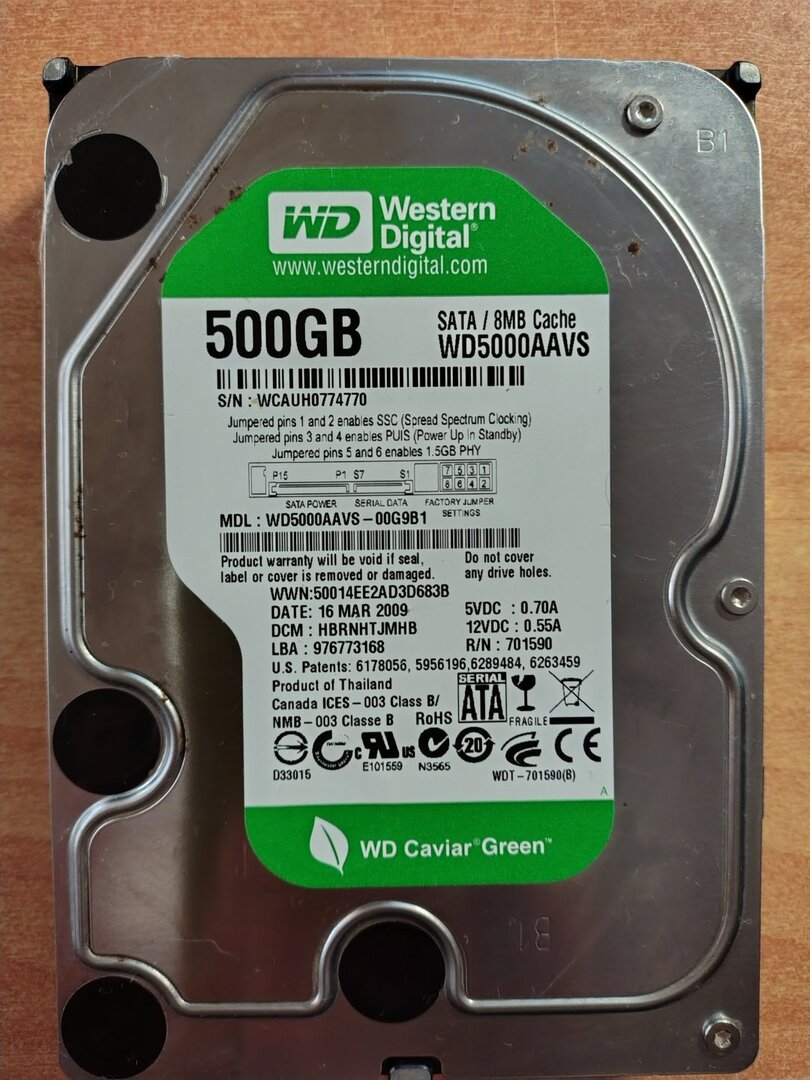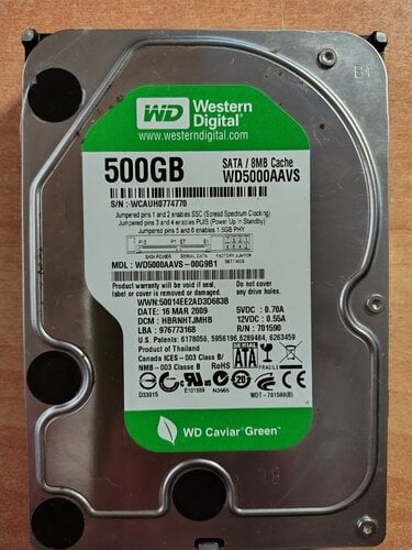 WESTERN DIGITAL WD5000AVS 500GB CAVIAR GREEN - 7200RPM SATA2