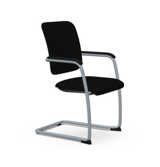 Καρέκλες συνεργασίας με στοιβαζόμενο μεταλλικό σκελετό σχήματος S με ξεχωριστή έδρα - πλάτη. Η πλάτη είναι επενδεδυμένη πολυουρεθάνη με ύφασμα. Είναι εξοπλισμένες με αντιολισθητικά πέλματα για την προστασία του δαπέδου. Ο στοιβαζόμενος σκελετός τις καθιστά ιδανικές για γραφεία και χώρους συνεδριάσεων. Μεταχειρισμένες σε πολύ καλή κατάσταση. Χρώμα: Μαύρο.