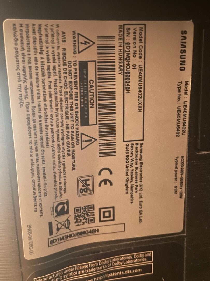 Samsung 40" MU6402 Smart 4K UHD TV με Σπασμένη Οθόνη για Ανταλλακτικά/Επισκευή