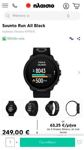 Suunto Run (46mm/Μαύρο/Glass fiber reinforced polyamide, Ατσάλι)ΚΑΙ ΑΝΤΑΛΛΑΓΗ