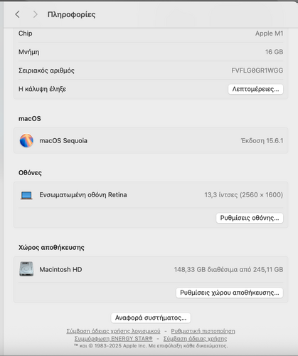 MacBook Air Μ1, 16 Ram και 256 Gb