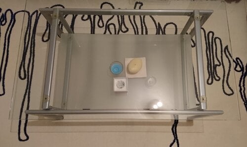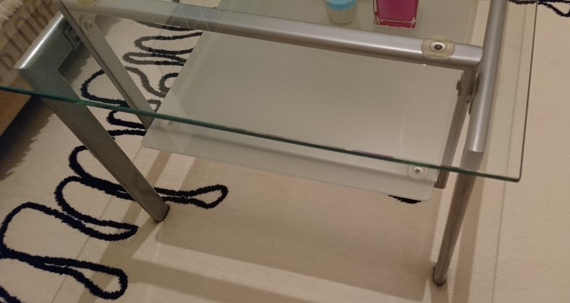 Τραπέζι μέσης, σαλονιού γυάλινο με μεταλλικό σκελετό, 2 ράφια, ορθογώνιο Μ100 x Π50 x Υ44 εκ.