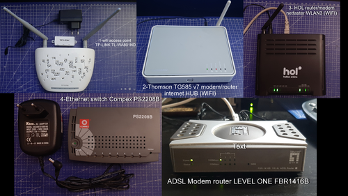 Διαθέτει 4 × RJ-45 10/100 Mbps ports, έχει wifi και δουλεύει άρτια. Είναι σεταρισμένο ως απλό HUB.