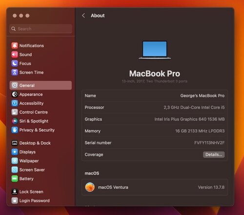 Apple Macbook Pro 2017 (13", Two Thunderbolt 3 Ports)