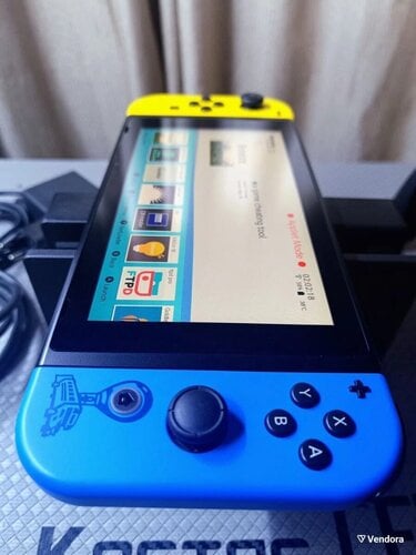 Nintendo Switch V2 Fortnite Edition. Έρχεται με τα κίτρινα και μπλε Joy-Cons και τα αντίστοιχα γραφικά στο backplate της κονσόλας και στο dock.