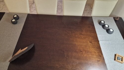 Η τραπεζαρία εχει στα φύλλα επέκτασης κυρίως "λαδιές" που προσπάθησα να τις δείξω σε μία από τις φωτογραφίες οσο καλύτερα γίνεται