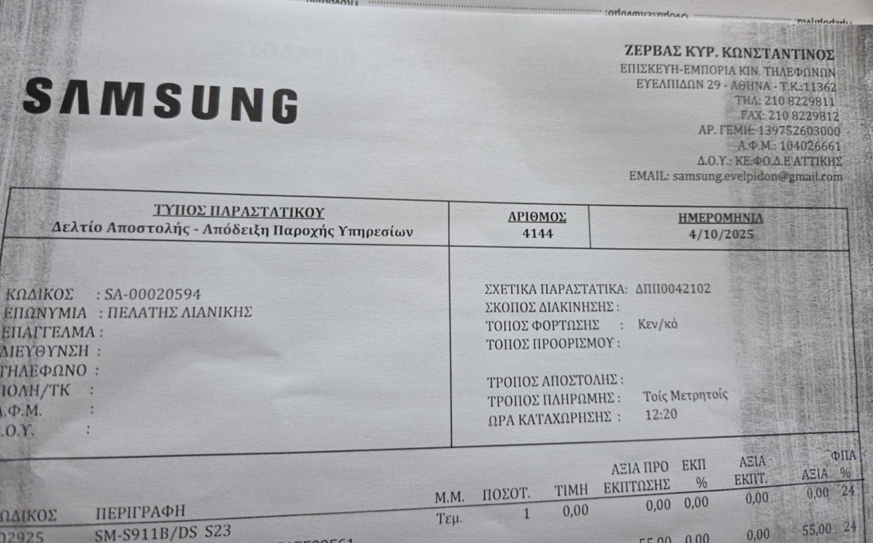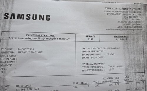 Έχει γίνει αλλαγή μπαταρίας στις αρχές Οκτωβρίου 2025 σε επίσημο service Samsung (Ευελπίδων).