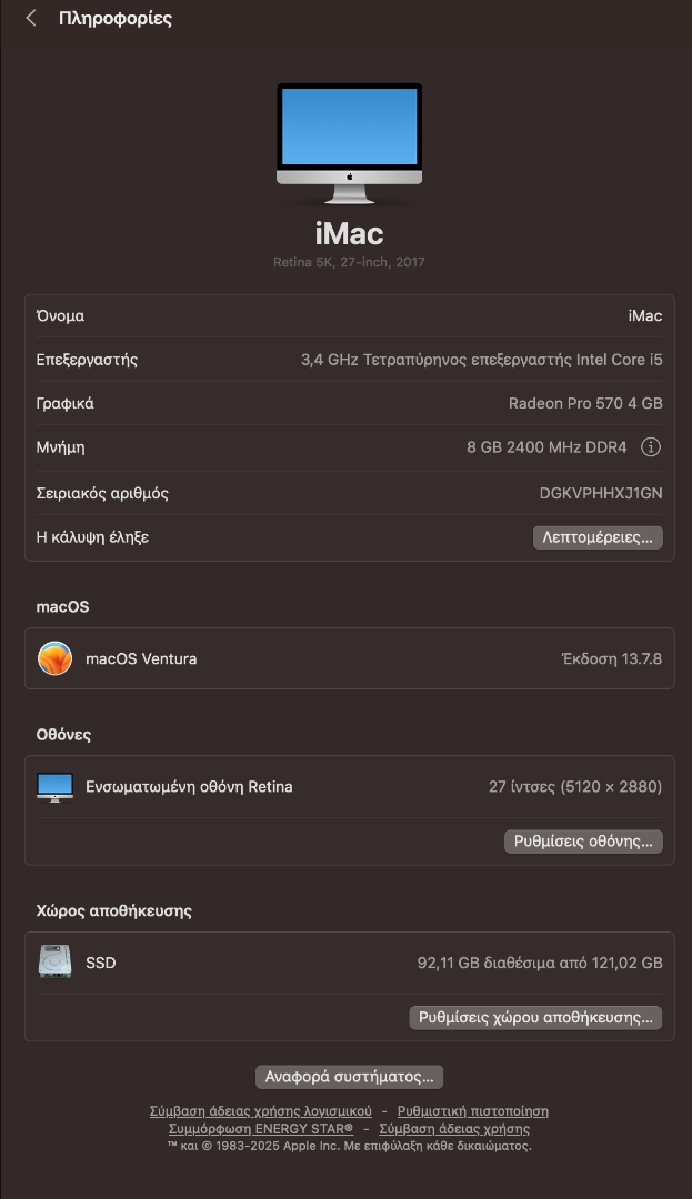 🧱 Λειτουργικό: macOS Ventura 13.7.8 (καθαρή εγκατάσταση)