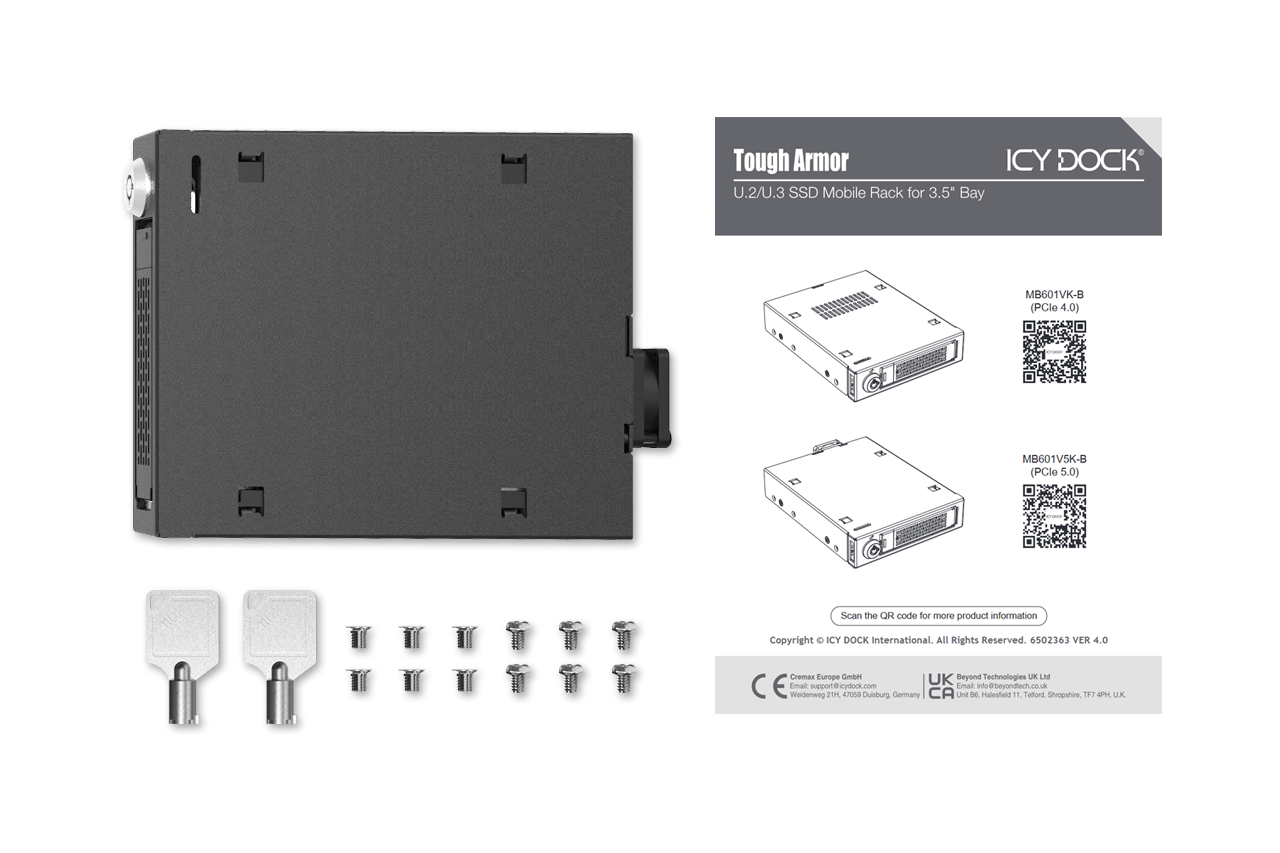 ICY DOCK U.2/U.3 SSD MOBILE RACK FOR 3.5"' BAY MB601V5K-B