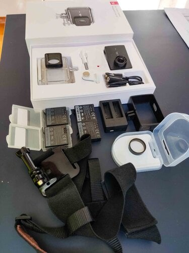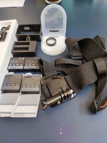 - Συνοδεύεται από: 4 συνολικά μπαταρίες (οι δυο ολοκαίνουριες), εξωτερικό διπλό φορτιστή μπαταριών, UV lens Protector, καλώδιο type-c, καλώδιο type-c σε mic adapter, headstrap mount, γνήσια underwater case,