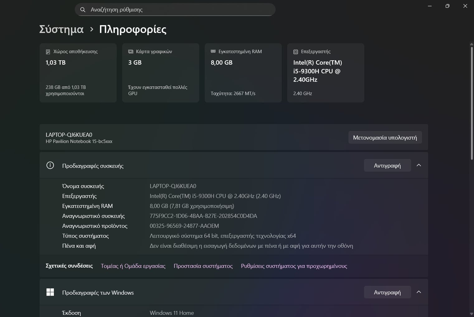 *Ανεξάρτητη κάρτα γραφικών gtx1050 3GB