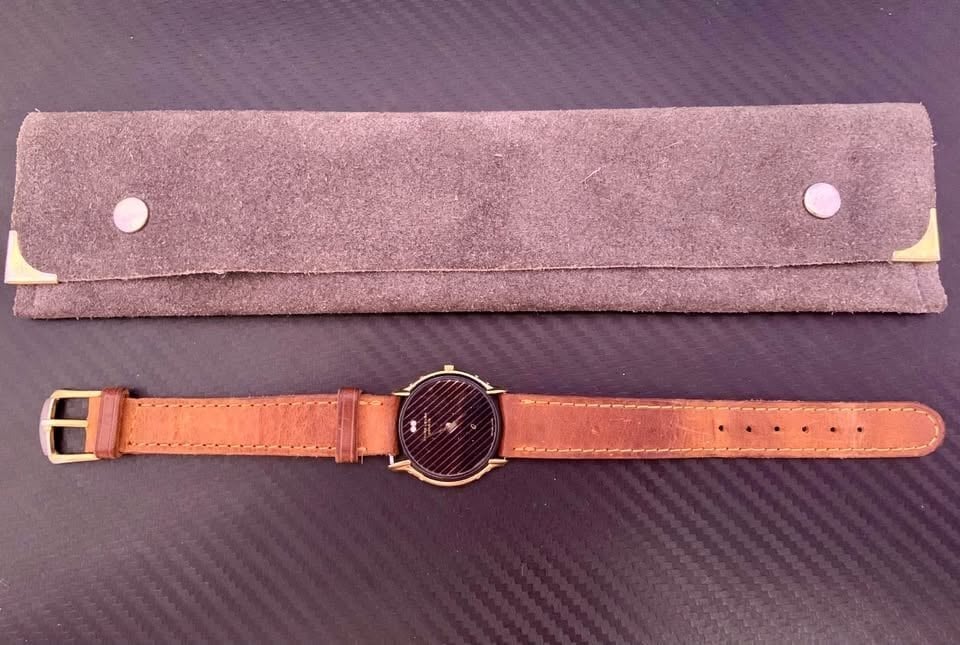 Το λουρί του είναι δερμάτινο όπως και η θήκη του ή οποία θα δωθεί μαζί πακέτο.