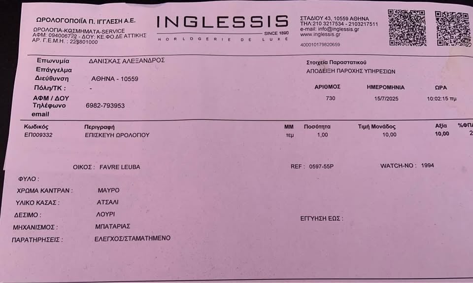 Πωλείται για λογαριασμό φίλου το ρολόι στις φωτογραφίες της Ελβετικής εταιρίας Favre-Leuba.