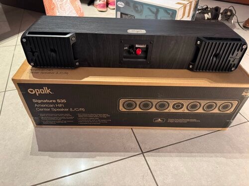 Πωλείται ηχείο κεντρικό Polk Audio S35 150W 2 Δρόμων πλήρως λειτουργικό δεν έχει απολύτως κανένα ελλάτωμα ή χτύπημα. Λειτουργεί απο το '19 που αγοράστηκε συνδεδεμένο σε 5.1 σύστημα και μέτρια προς χαμηλή χρήση αποκλειστικά σε ταινίες με πολυ-κάναλο ήχο.