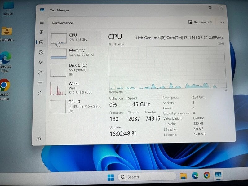 Επεξεργαστής: Intel Core i7-1165G7 (11ης γενιάς, 4 πυρήνες / 8 νήματα, έως 4.9 GHz με Turbo Boost) Cache 12Mb