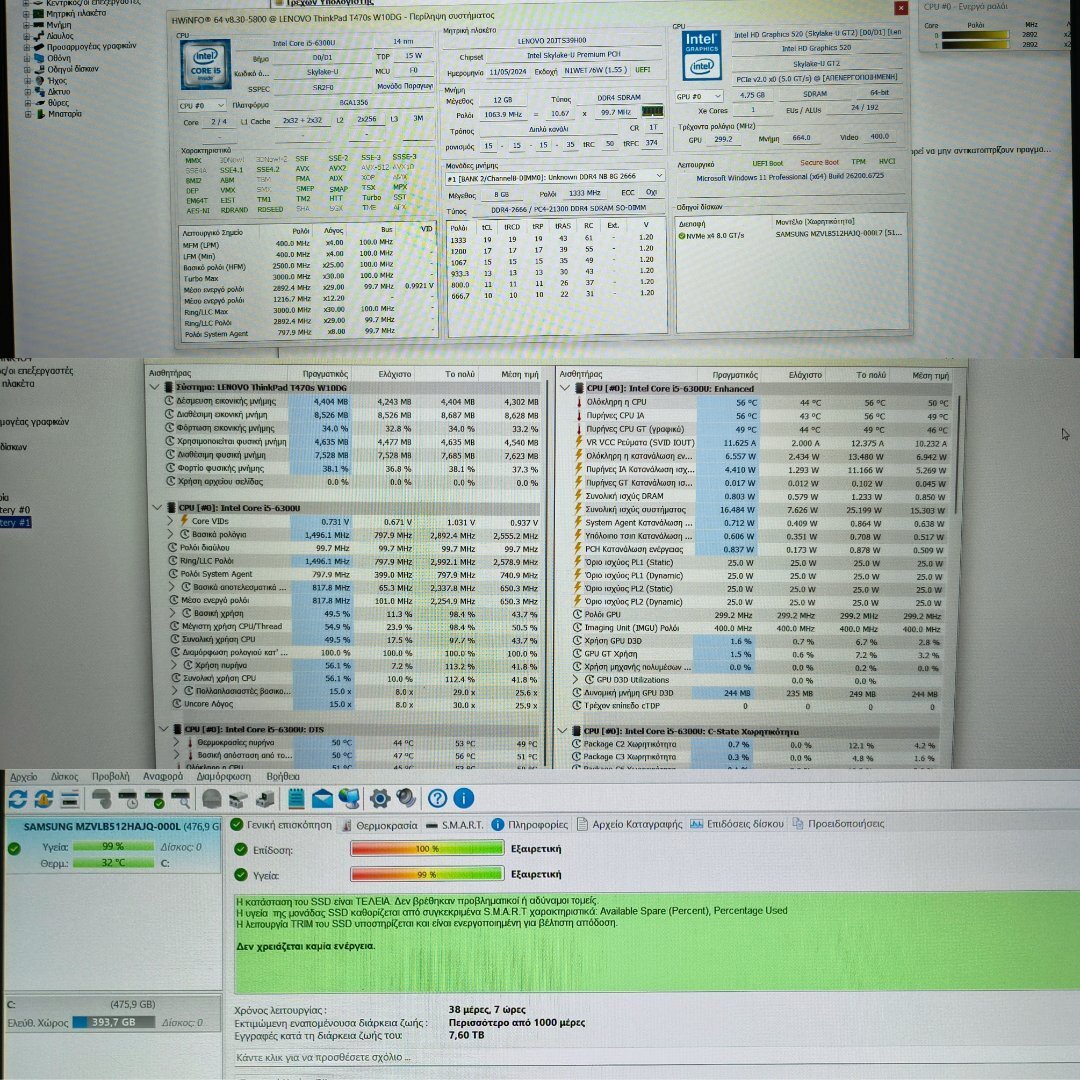 Το laptop αναβαθμίστηκε με 12gb ram σε dual channel (chip hynix 8GB module + 4gb ενσωματωμένη στη μητρική). Έγινε καθάρισμα και αλλαγή thermal paste εσωτερικά με θετικό αποτέλεσμα στη θερμοκρασία (χρήση ποιοτικής mx6). Έχει εγκατασταθεί εξαιρετικός Samsung NVME ssd, πολύ γρήγορος και αξιόπιστος με ελάχιστες εγγραφές (δείτε photo)