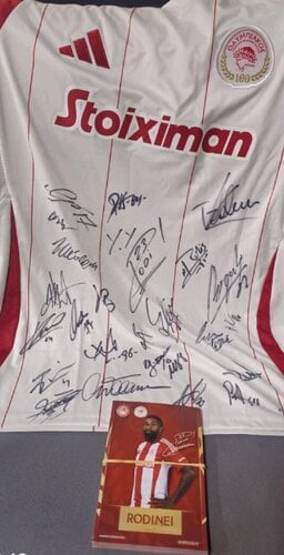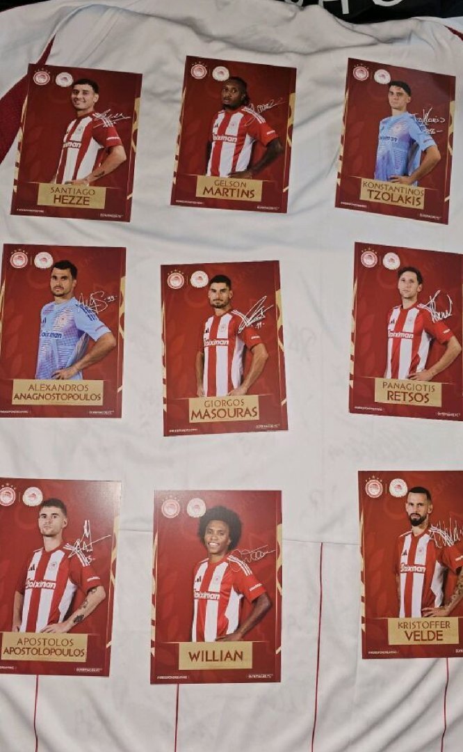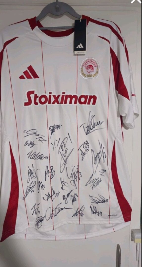 Συλλεκτική φανέλα ολυμπιακού καινούργια αφορετη με τα καρτελακια της, υπογεγραμμένη απο όλη την ομάδ