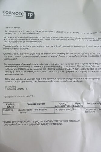 Πωλείται το παραπάνω ΣΦΡΑΓΙΣΜΕΝΟ κινητό του τίτλου Xioami Redmi Note 15 5G. Είναι η έκδοση 8GB RAM και 256GB ROM και χρώμα TITANIUM GREY (γκρι). Αγορασμενο στις 4/10/2025 με εγγύηση 2 χρόνια από Cosmote. Δίνεται μαζί με την απόδειξη φυσικά.
