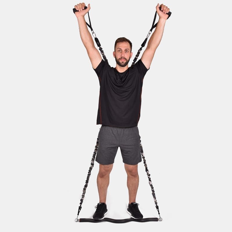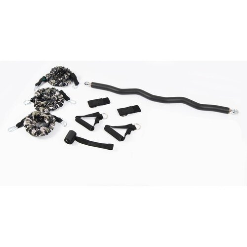 Είναι το ιδανικό εργαλείο γυμναστικής σε οποιοδήποτε επίπεδο φυσικής κατάστασης και αν βρίσκεστε. Μπορείτε να εκτελέσετε αμέτρητες ασκήσεις είτε από όρθια θέση είτε από το έδαφος ενδυναμώνοντας και τονώνοντας όλους τους μυς του σώματος σας, χωρίς να καταπονείτε τις αρθρώσεις σας. Σας βοηθά να βελτιώσετε τον συντονισμό, την ευελιξία και να ενισχύσετε την αντοχή σας. Το σετ περιλαμβάνει τρία διαφορετικά λάστιχα αντίστασης όπου μπορούν να συνδεθούν με την μπάρα καθώς διαθέτουν μεταλλικούς κρίκους και από τις δύο πλευρές και με αυτό τον τρόπο μπορείτε να πραγματοποιήσετε αμέτρητες εναλλαγές προπόνησης. Διαθέτει βάση για την πόρτα, αντιολισθητικές λαβές με κρίκους και ιμάντες αστραγάλου για γρήγορη προσαρμογή στα λάστιχα αντίστασης και πρόσθετη ποικιλία ασκήσεων.