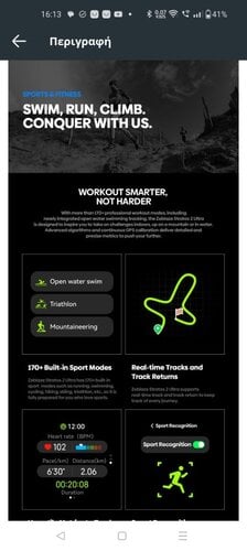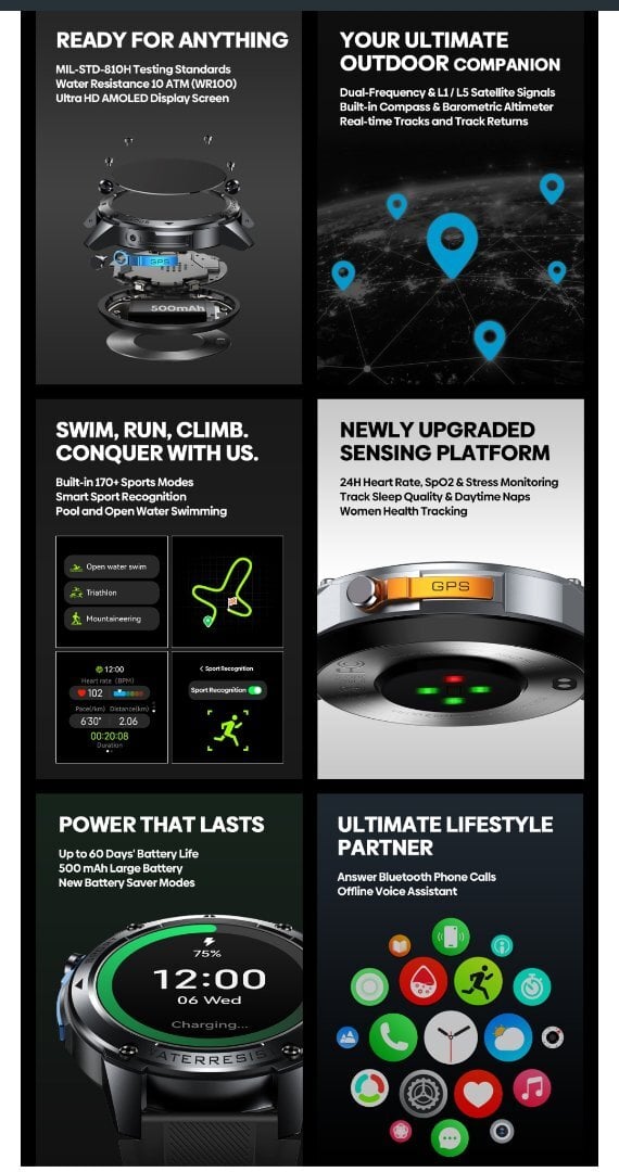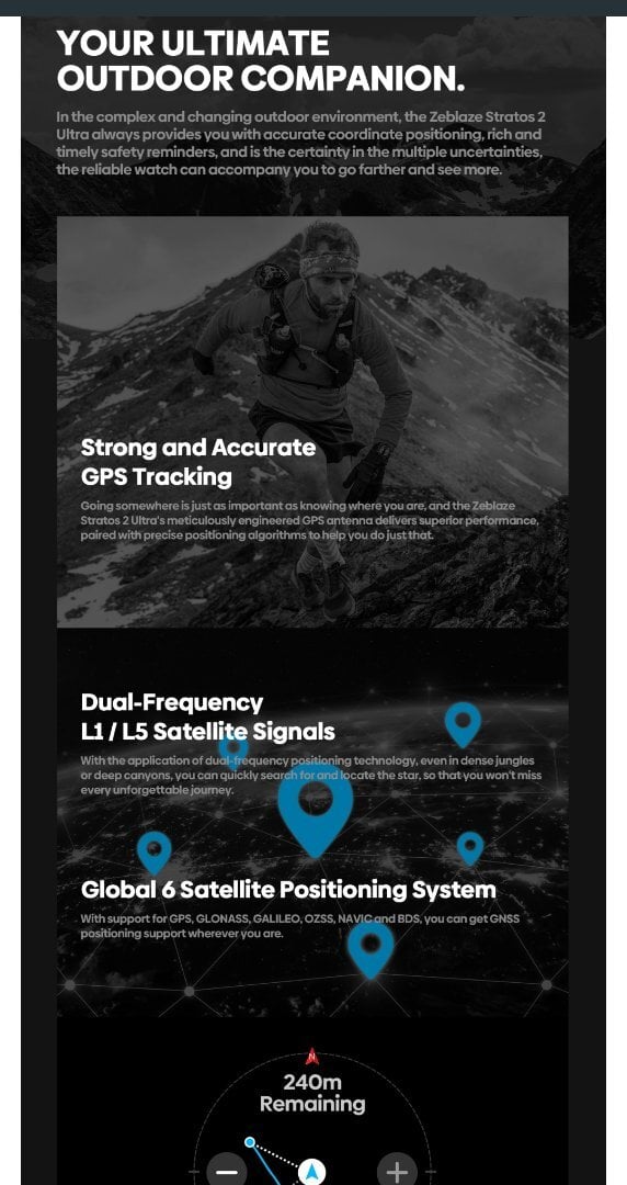 Πωλείται Zeblaze Stratos 2 ultra μαύρο. Το Stratos ultra 2 είναι ένα sport smartwatch για να ξεχωρίζεις κατασκευασμένο από ανοξείδωτο ατσάλι 316K φτιαγμένο για τους λάτρεις των εξορμήσεων περνώντας 15 τεστ στρατιωτικής αντοχής, 10ATM & IP69K Ανθεκτικό στο νερό & σε θαλάσσια σπορ, Gps & εισαγωγή διαδρομής, Ultra Amoled οθόνη 1.43'HD ανάλυσης 466x466 Always-on από gorning gorilla glass , υποστηρίζει Bluetooth Call Hi-Fi, ειδοποιήσεις social, μετρήσεις καρδιακών παλμών, οξυγόνου, stress, πρόγνωση καιρού, έλεγχο μουσικής και αυτονομία μπαταρίας 50 ημέρες ιδανικό για αθλητική δραστηριότητα καλύπτοντας μεγάλη γκάμα με προηγμένη υποστήριξη γυμναστικής 170+ επαγγελματικές λειτουργίες προπόνηση. Έξυπνη σπορ Αναγνώρισης .Είναι ιδανικό για αθλητές δρομείς & ποδηλάτες αφού φέρει ενσωματωμένο GPS 5 δορυφόρων διπλής ζώνης, πιξιδα, βαρομετρικο, υψόμετρο . Επίσης διαθέτει συγχρονισμό με strava & apple health , ενώ διαθέτει πάνω από 100 watch face ώστε να το προσαρμόσετε με τα γούστα σας.
