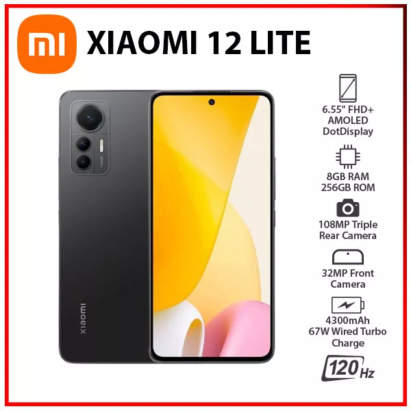 Xiaomi 12 Lite 5G (Black 8GB RAM, 256 Storage) - Featherweight slim design | Studio-level 108MP triple camera | Smart 67W turbo charging | 120Hz AMOLED display