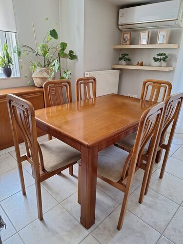 ΠΩΛΗΣΗ ΤΡΑΠΕΖΑΡΙΑΣ ΜΕ 6 ΚΑΡΕΚΛΕΣ ΚΑΙ ΜΠΟΥΦΕ ΑΠΟ ΞΥΛΟ ΚΑΡΥΔΙΑΣ