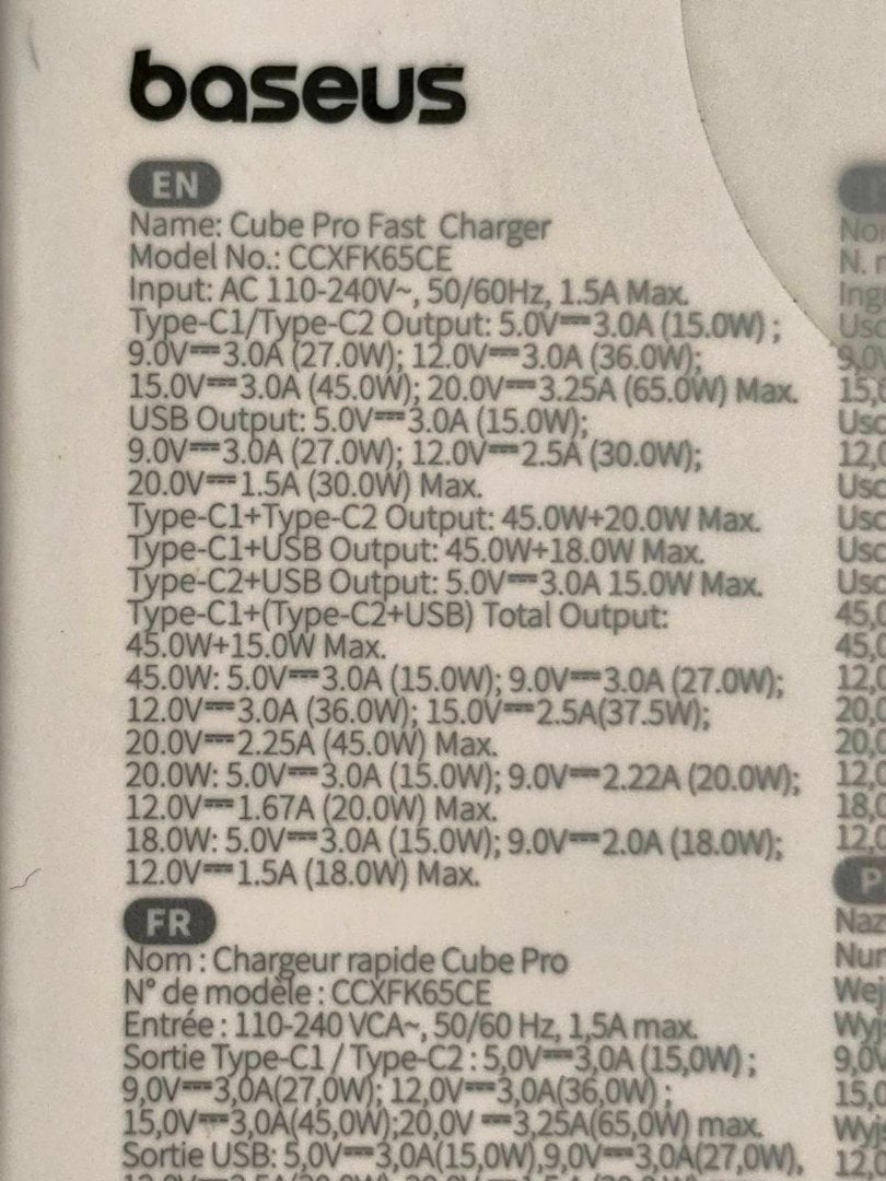 Καινούριος Σφραγισμένος Φορτιστής Baseus Cube Pro Charger 65W