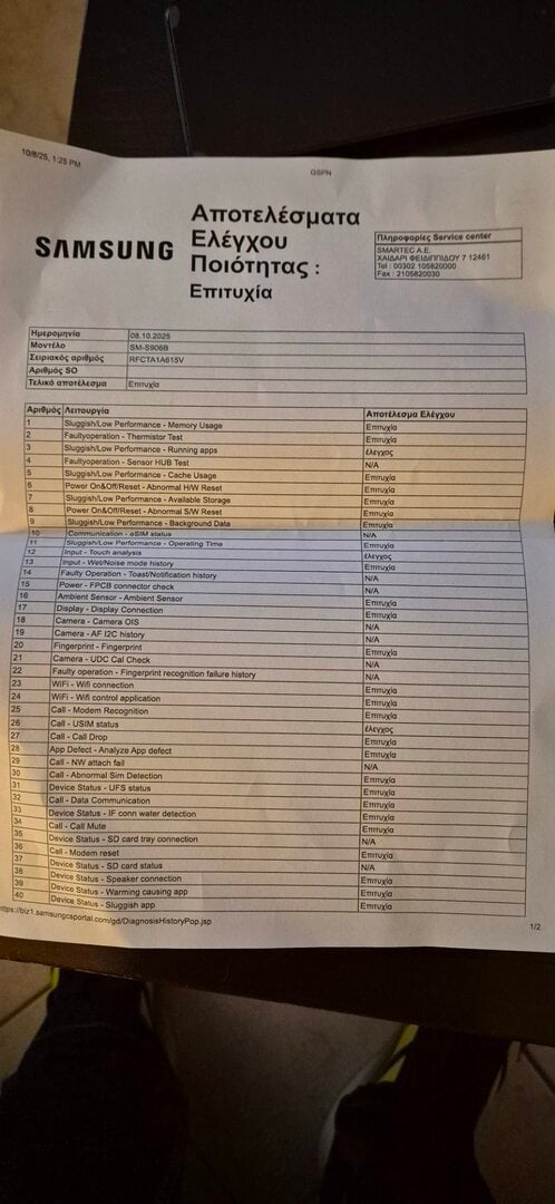 📅 Έγινε επίσημος έλεγχος (08/10/2025) σε εξουσιοδοτημένο κέντρο της Samsung – διαθέσιμο εκτυπωμένο πιστοποιητικό για την άψογη λειτουργία του.