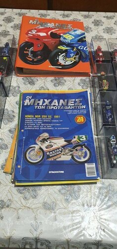 Πωλείται η συλλογή της σειράς Οι Μηχανές των Πρωταθλητών. Η μηχανές είναι σε άριστη κατάσταση χωρίς ίχνος φθοράς στης θήκες τους. Η Σειρά είναι πλήρης 41 μινιατούρες + 3 Bonus. Η συλλογή ΔΕΝ σπάει. Αποστολή πανελλαδικά είτε με μεταφορική εταιρία είτε με ΕΛΤΑ. Υπάρχει και η δυνατότητα της παραλαβής στο χώρο μου έξω από τη Χαλκίδα. Έξοδα αποστολής βαραίνουν τον παραλήπτη ή τιμή είναι τελική. Πληρωμή κατόπιν κατάθεσης σε τραπεζικό λογαριασμό η μέσω IRIS.