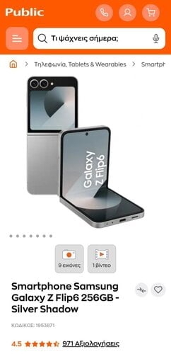 Samsung Galaxy z flip 6 (Ασημί12GB/256 GB)