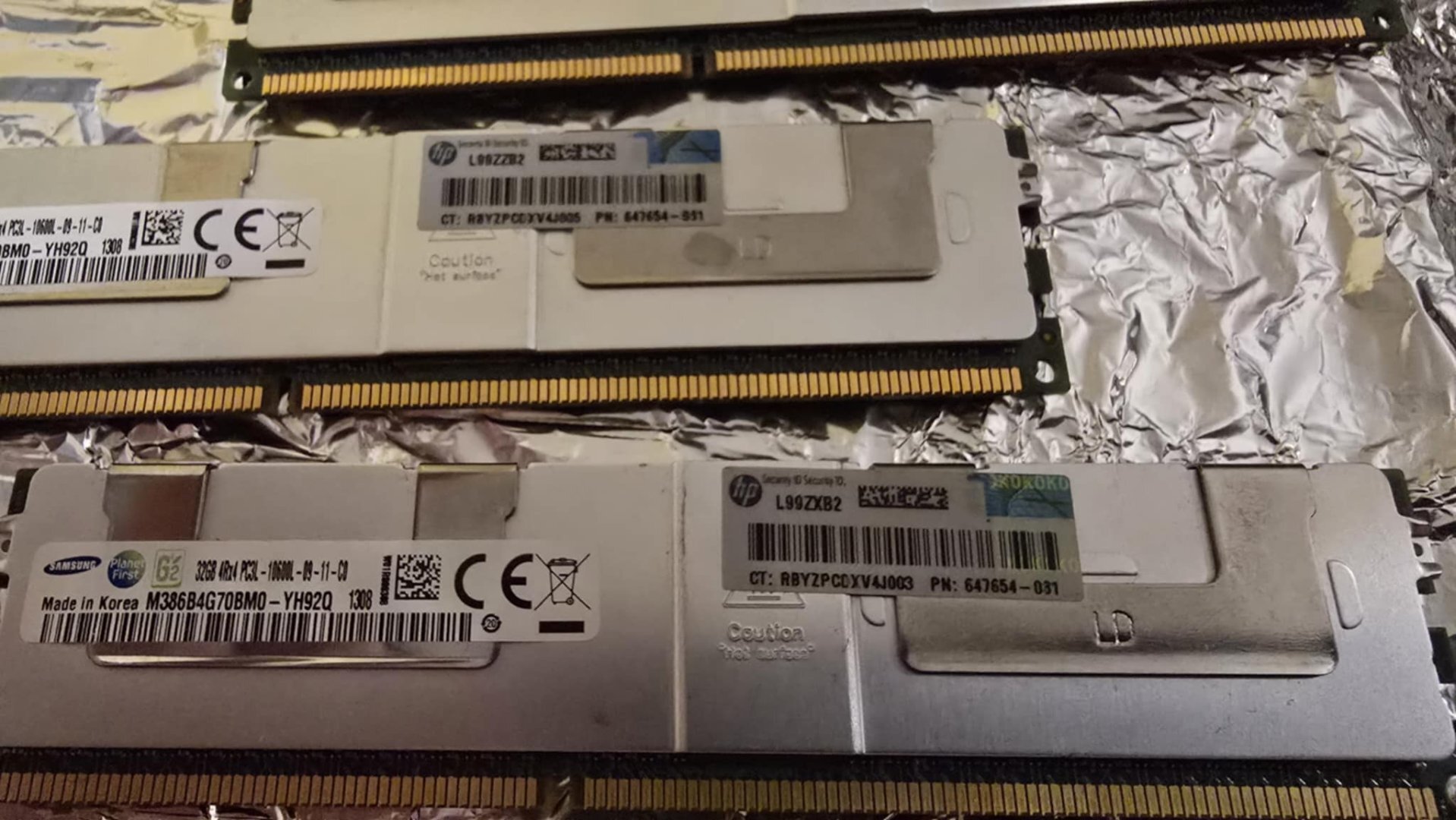 6x 32GB ECC LR-DIMM 4Rx4 PC3L-10600L-09-11-C0 Samsung M38684G70BM0-YH92Q με ψύκτρα 50 ευρώ έκαστη, 80 ευρώ το ζευγάρι, 150 ευρω η τετράδα, 200 η εξάδα