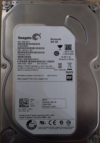 ST500DM002 - Seagate Barracuda 500GB 3.5" SATA III 7200rpm 16MB Cache - 10€