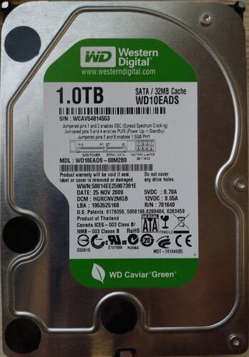 WD10EADS - Western Digital Caviar Green 1TB 3.5" SATA II 5400-7200rpm 32MB Cache - 15€