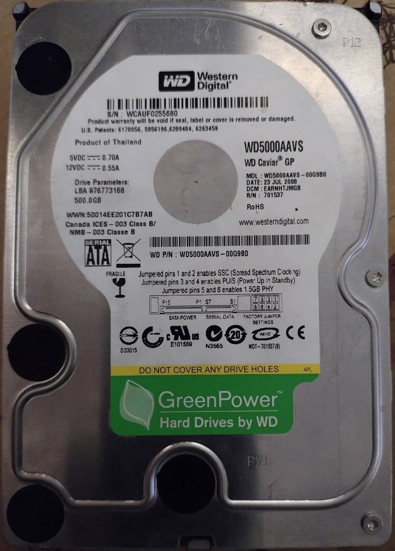 WD5000AAVS - Western Digital Caviar Green 500GB 3.5" SATA II 7200rpm 8MB Cache - 10€