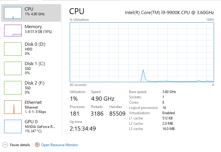 CPU: Intel Core i9‑9900K @ 3.60GHz
