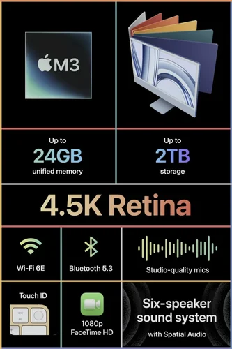 Apple iMac 24" M3/8-Core CPU/10-Core GPU/8GB RAM/256GB SSD/macOS Tahoe (έκδοση 26)